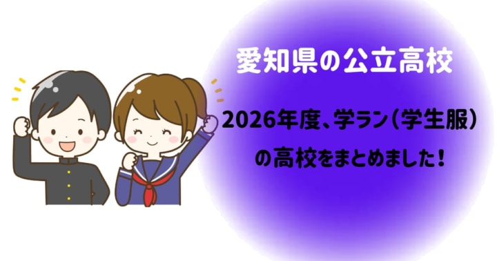 愛知県の公立高校の制服【愛知県の公立高校】2026年度、学ラン(学生服)の高校をまとめました! 愛知県内では公立高校の制服が次々と新しくなっています。 こちらの記事にも書いたのですが、 愛知県でセーラー服を採用している公立高校が絶滅寸前です! 近年ではセーラ服と同様に学ラン(詰襟学生服)の高校も少なく2026.04.07愛知県の公立高校の制服