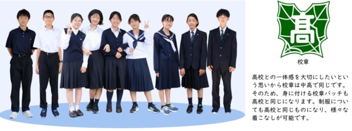 時習館高校と同じブレザータイプの制服です。上の写真は高校生の制服なので、ネクタイが中学生用になります。夏は半袖ポロシャツがあります。