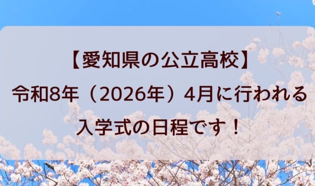 - 【愛知県の公立高校】2026年(令和8年)4月に行われる入学式の日程です!